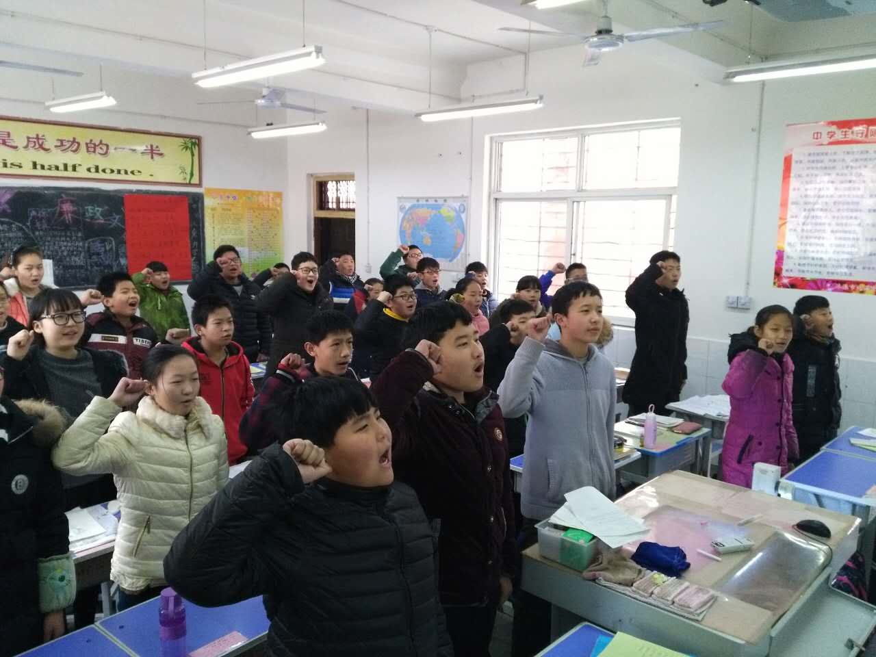 其次,每个班级订出目标,向对手班级发起挑战! 并进行宣誓。