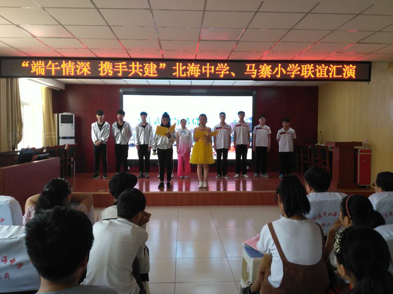 汇演结束,马寨小学校长吕建方首先感谢北海中学师生们的真诚邀请,热情款待。同时表示,两校毗邻相处,关系深厚,作为北海中学的生源地,大家都为共同的目标而努力。