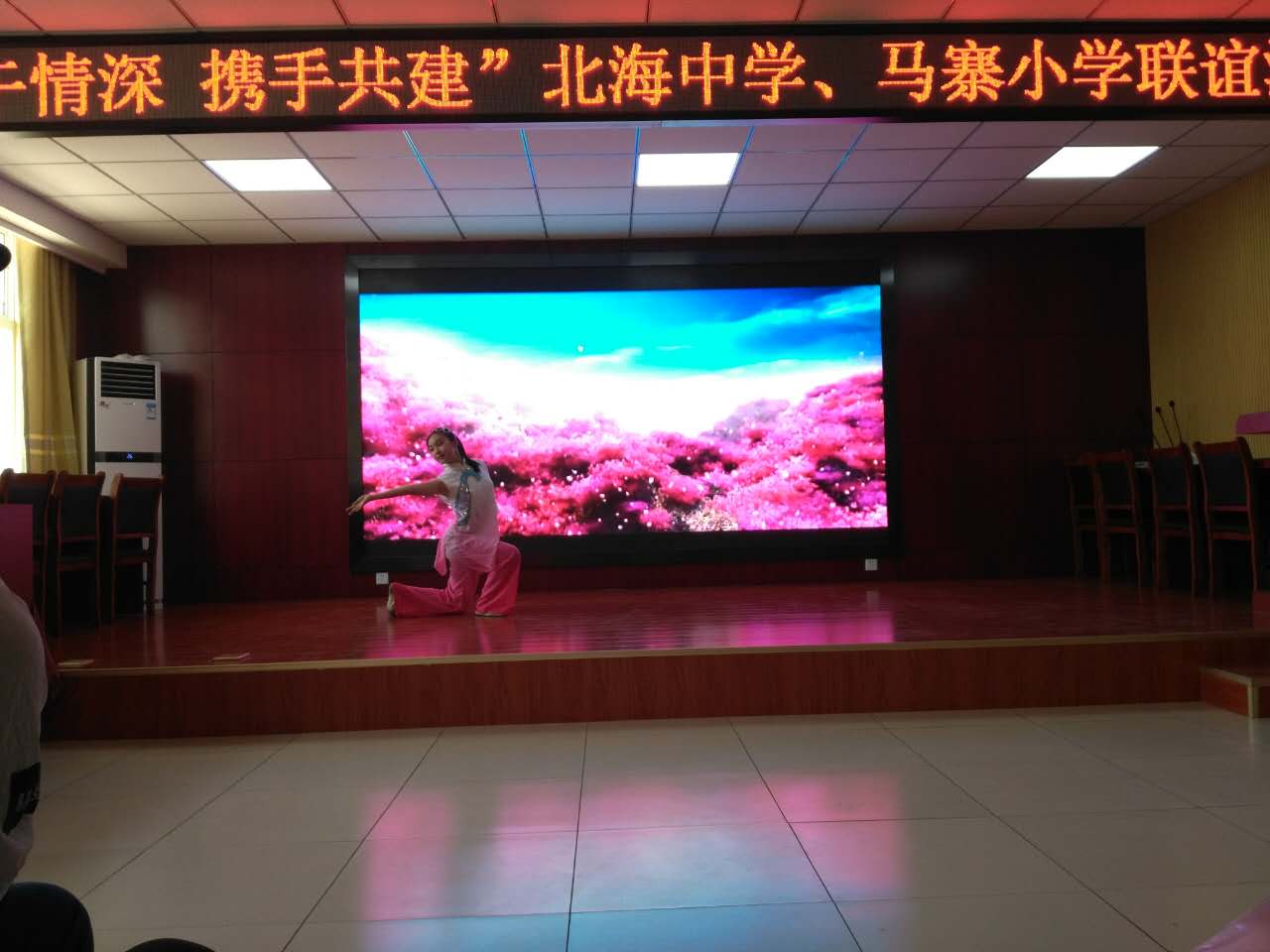 北海中学校长王强东也在致辞中表示,非常感谢马寨小学为学校输送那么多的优秀学子。之后,王强东校长高歌一曲,代表全体教职员为大家奉上节日的祝福,两校联谊汇演在动人的旋律中、在久久不息的掌声中落下帷幕。