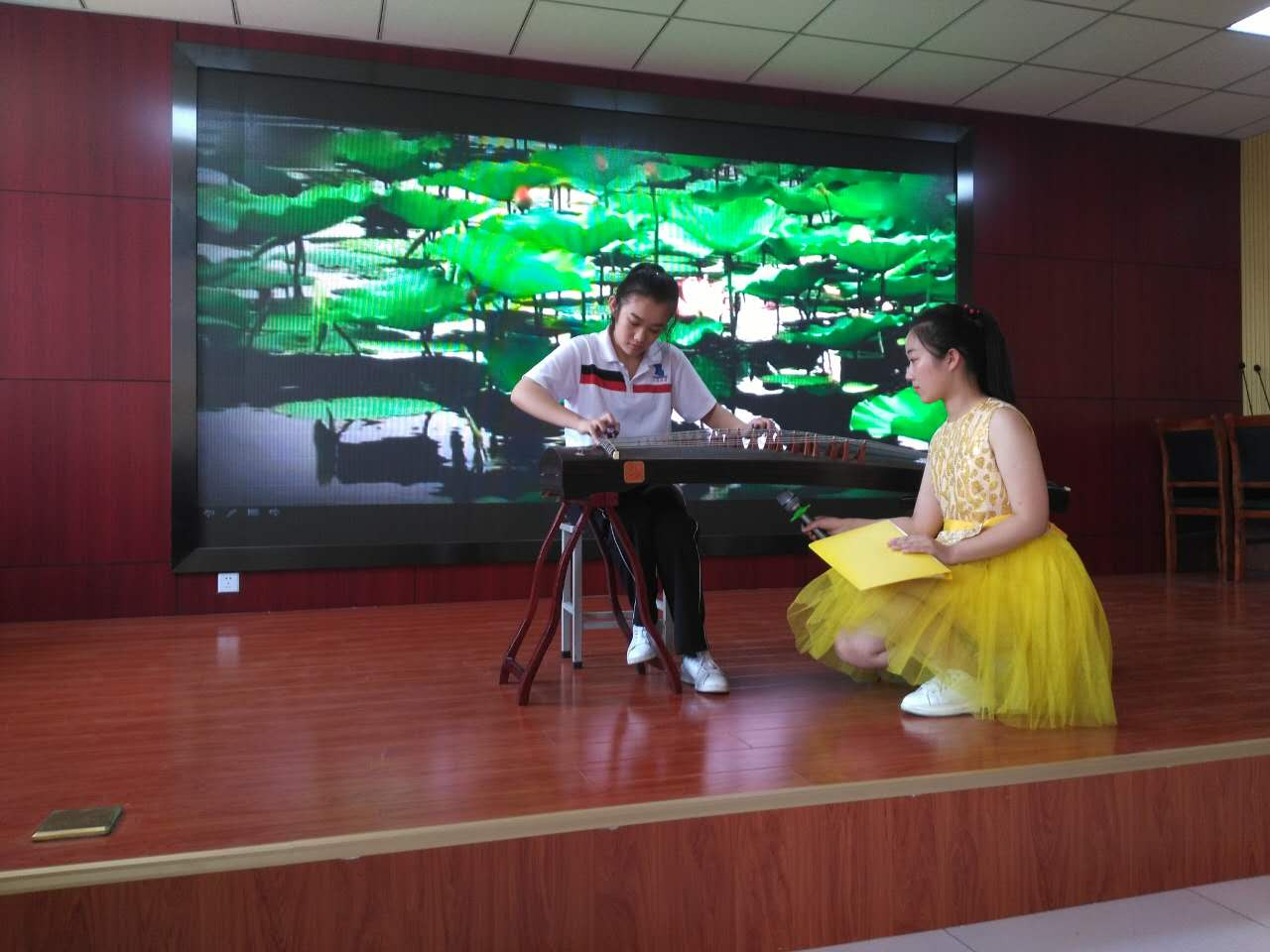 幽婉恬淡、丝丝沁心的古筝《荷塘月色》,步步生莲、芙蓉顾盼的古典舞《凉凉》,欢乐悠扬、高亢激昂的葫芦丝《蓝色的香巴拉》,把大家带到了古色古香的艺术殿堂。自编自写的快板《夸夸咱的班》、幽默风趣的相声《笑谈名著》、形式新颖的三句半《养成文明好习惯》,贴近时代、表现同学们的真实生活。爵士舞《we like dancing》, 则用炫酷的舞步、劲爆的节拍、青春的活力点燃了全场热情的火焰。