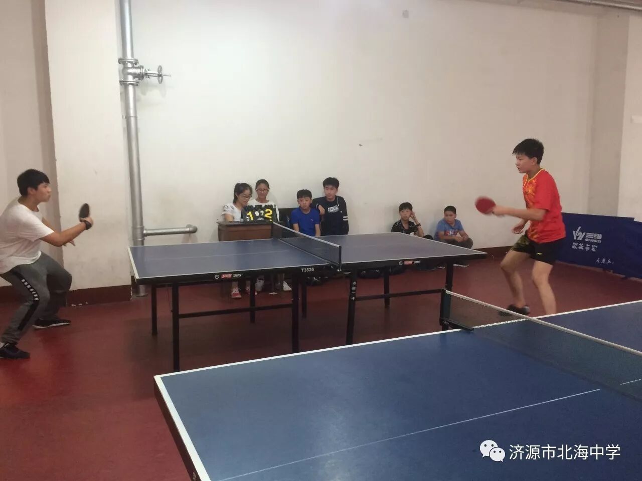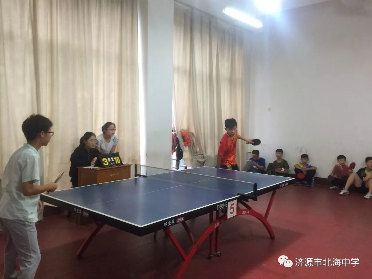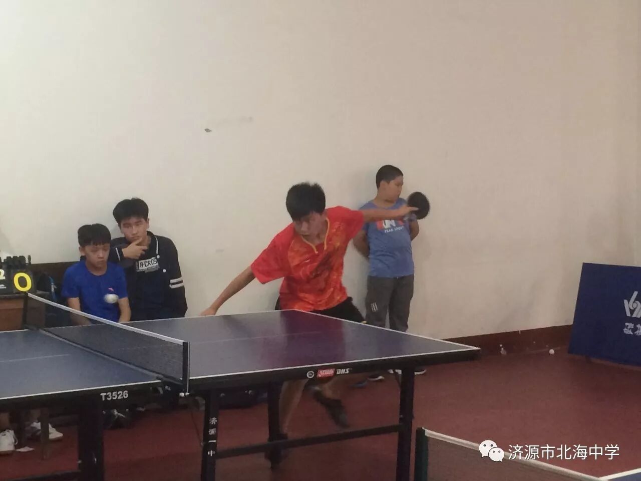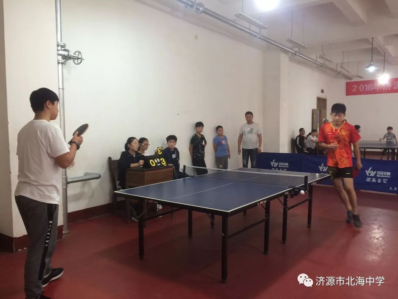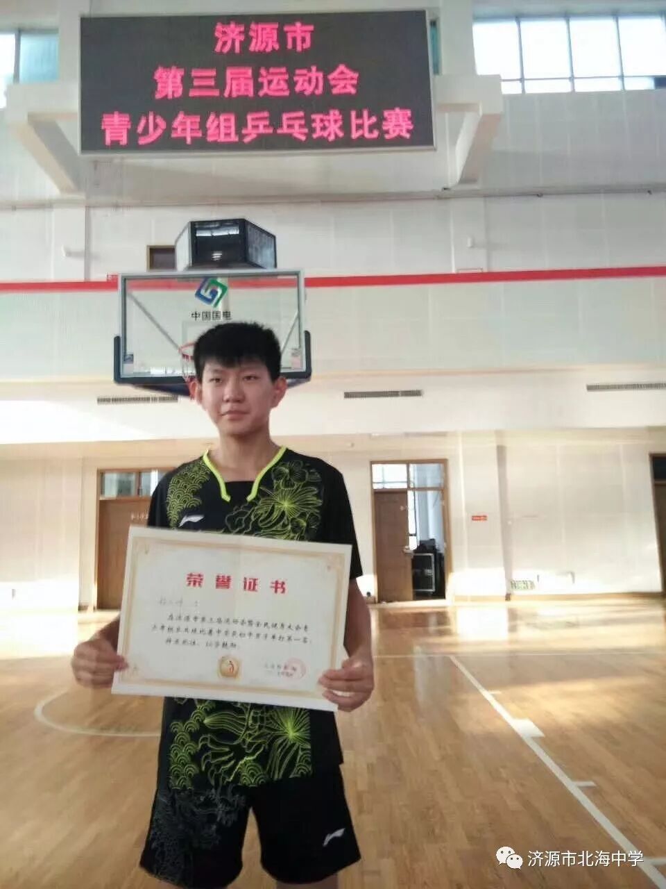 9月27日至29日,2017年济源市第三届全运会中小学生乒乓球比赛在市第一中学体育馆举行,北海中学乒乓球队再创佳绩,取得了初中男子单打冠军。